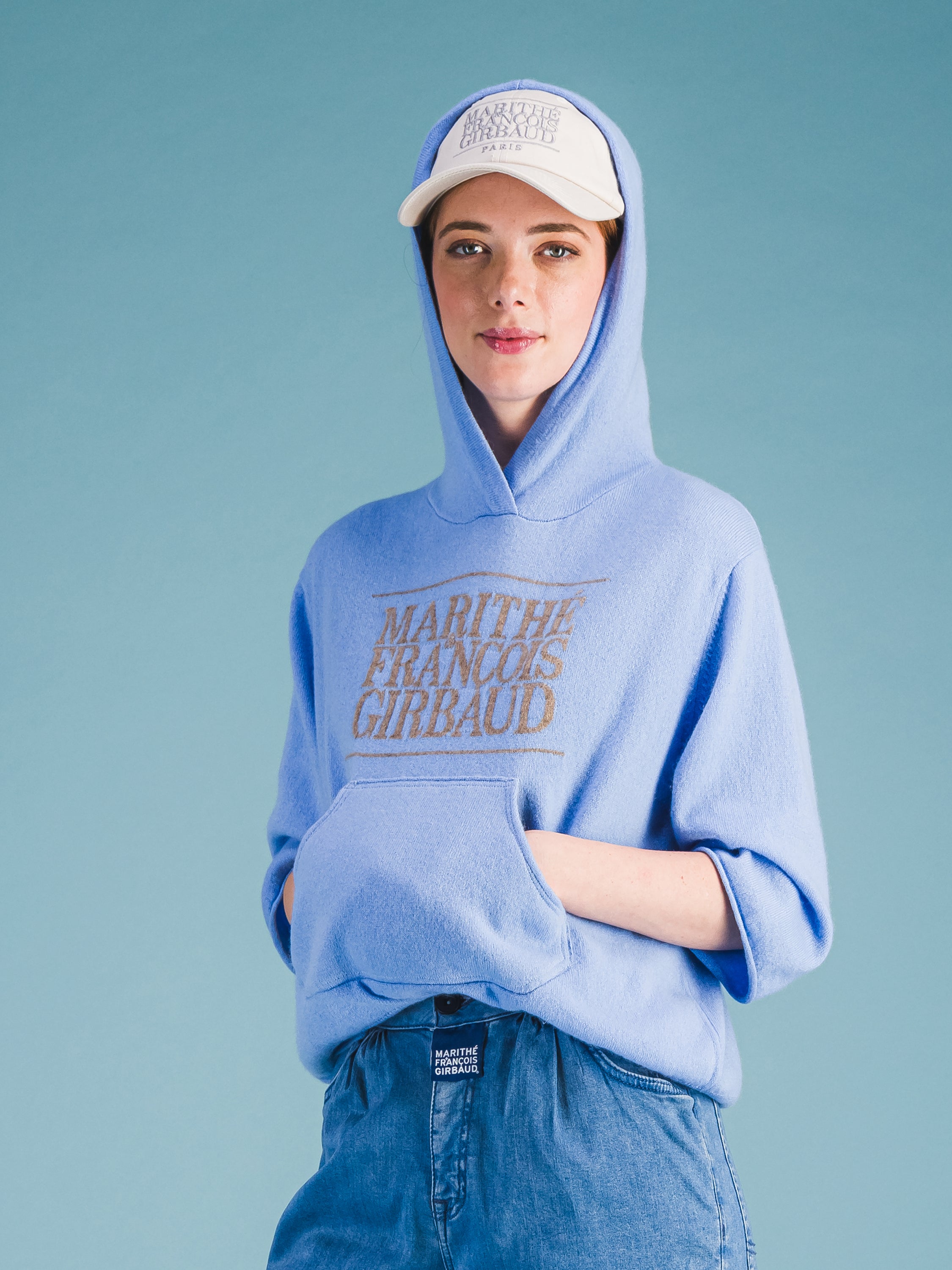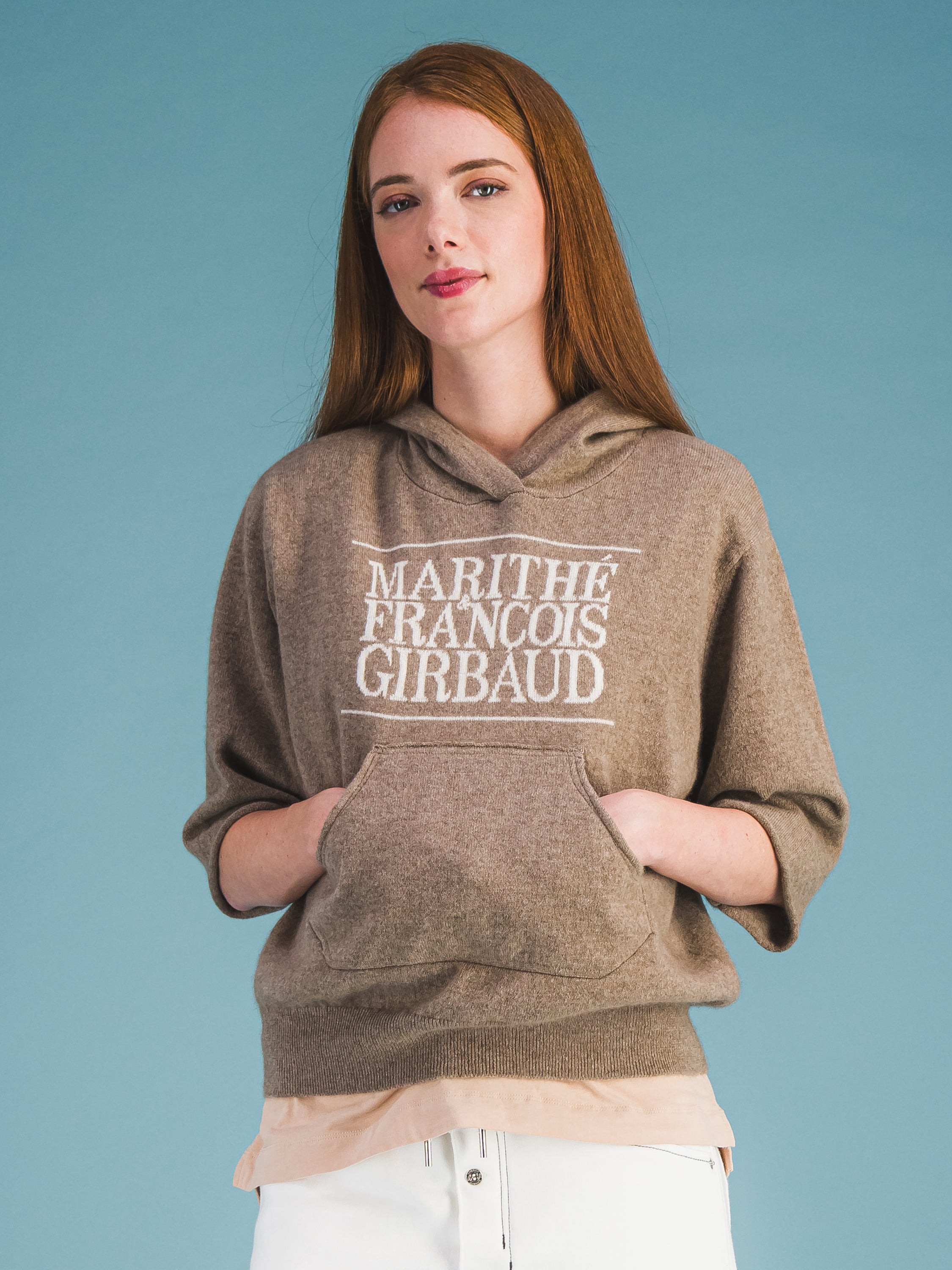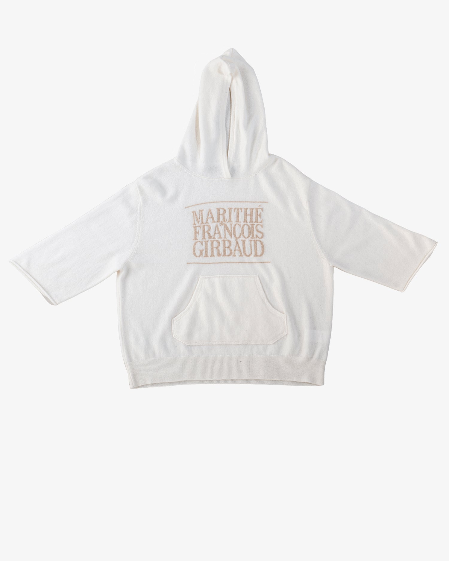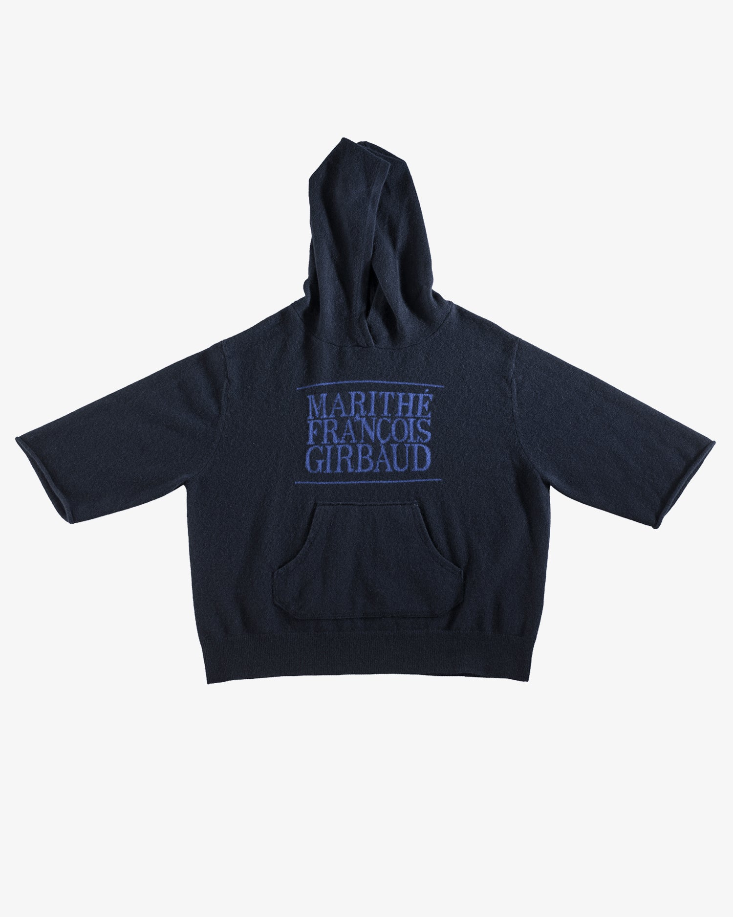 Idéal en superposition, ce sweat à capuche en cachemire doux à manches courtes et coupées arbore un logo intarsia 1972 Marithé + François Girbaud que nous avons réintroduit en réponse au culte qui s'est développé autour de lui en Asie. Sa poche kangourou est conçue avec une couche intérieure contrastée et le bord emblématique "Roll-twist" de M+FG - la signature distinctive des jeans à 5 poches de la marque. En mettant les mains dans cette poche, le porteur adopte la posture d'un danseur, plutôt que d'un adepte du streetwear négligé. Associez-le à notre pantalon S.P.Q.R.CITY à jambe étroite et taille haute.
