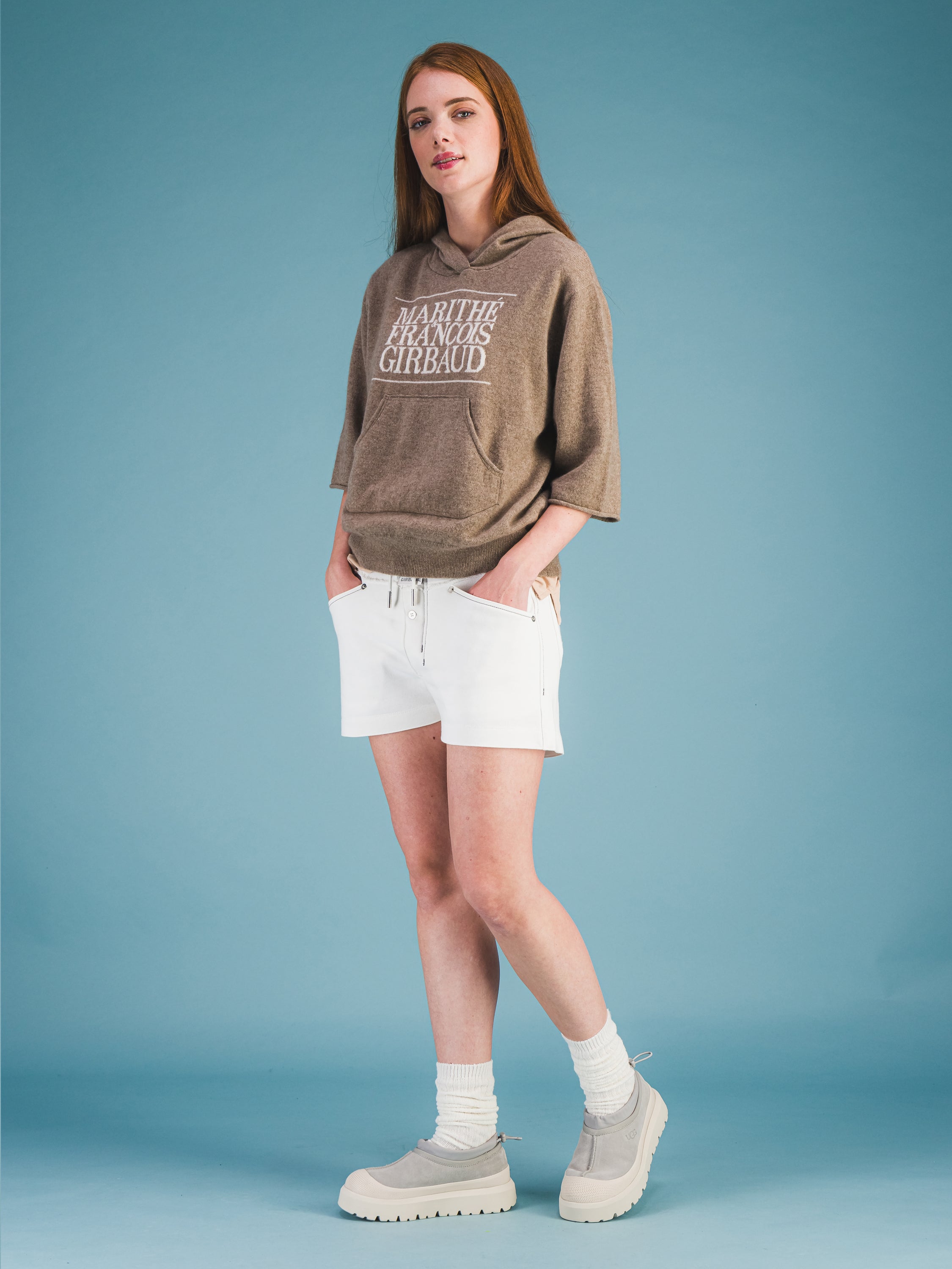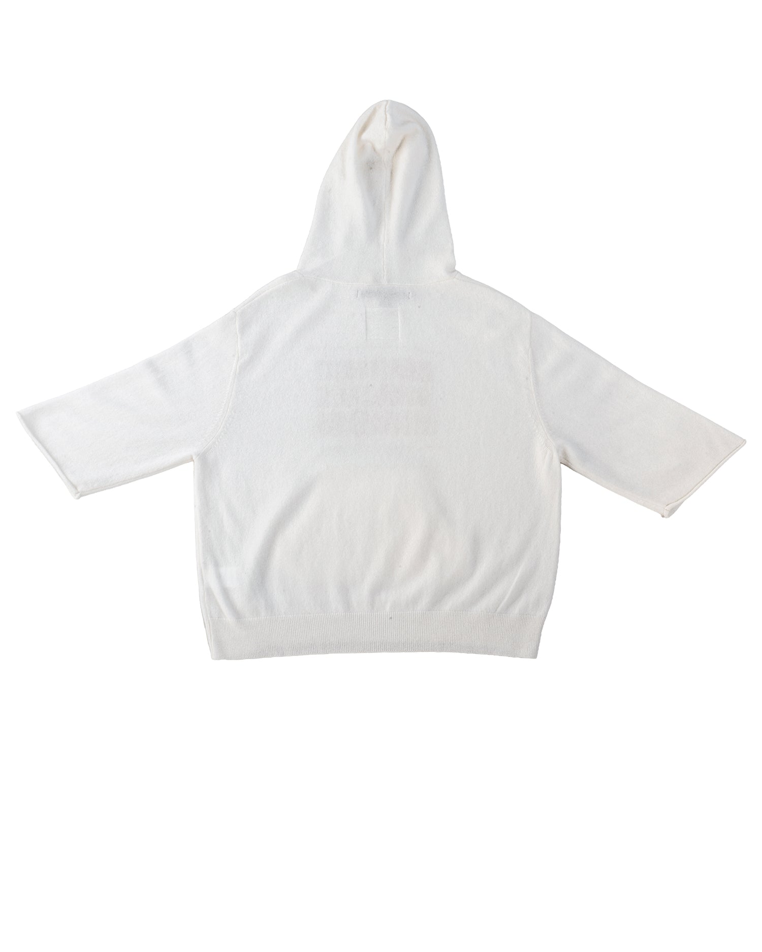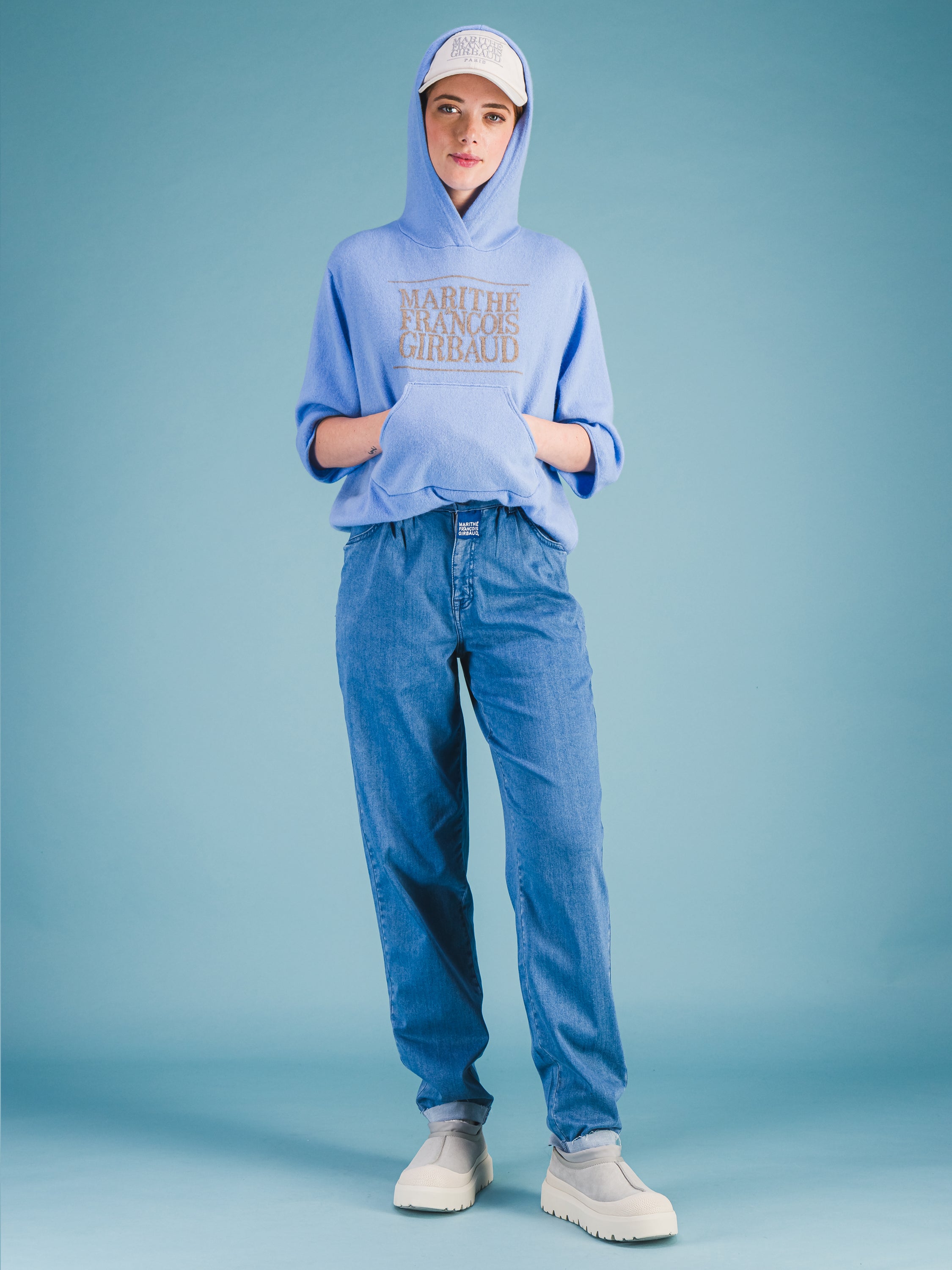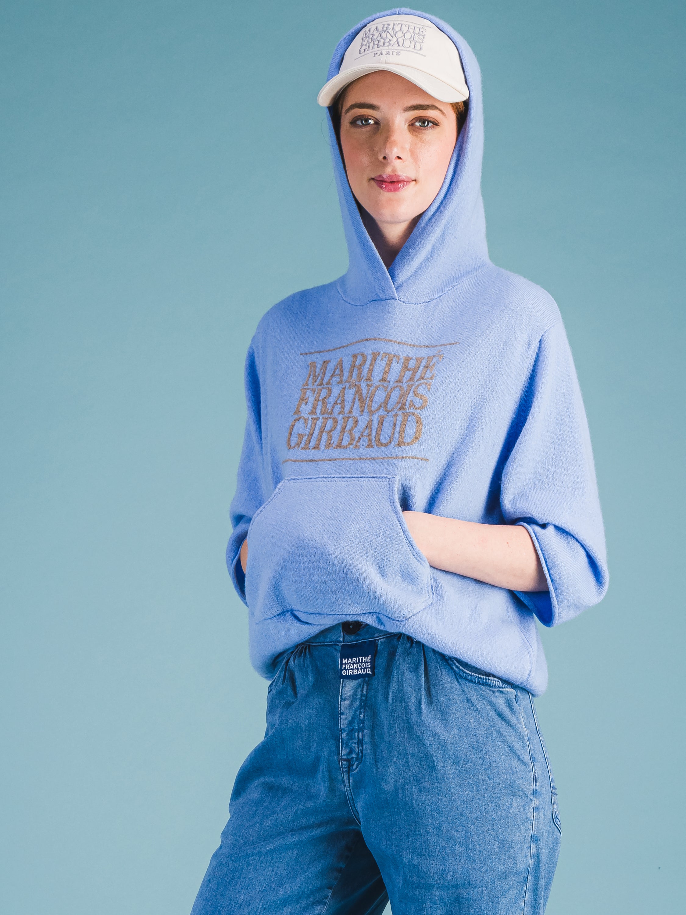 Idéal en superposition, ce sweat à capuche en cachemire doux à manches courtes et coupées arbore un logo intarsia 1972 Marithé + François Girbaud que nous avons réintroduit en réponse au culte qui s'est développé autour de lui en Asie. Sa poche kangourou est conçue avec une couche intérieure contrastée et le bord emblématique "Roll-twist" de M+FG - la signature distinctive des jeans à 5 poches de la marque. En mettant les mains dans cette poche, le porteur adopte la posture d'un danseur, plutôt que d'un adepte du streetwear négligé. Associez-le à notre pantalon S.P.Q.R.CITY à jambe étroite et taille haute.