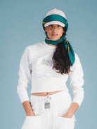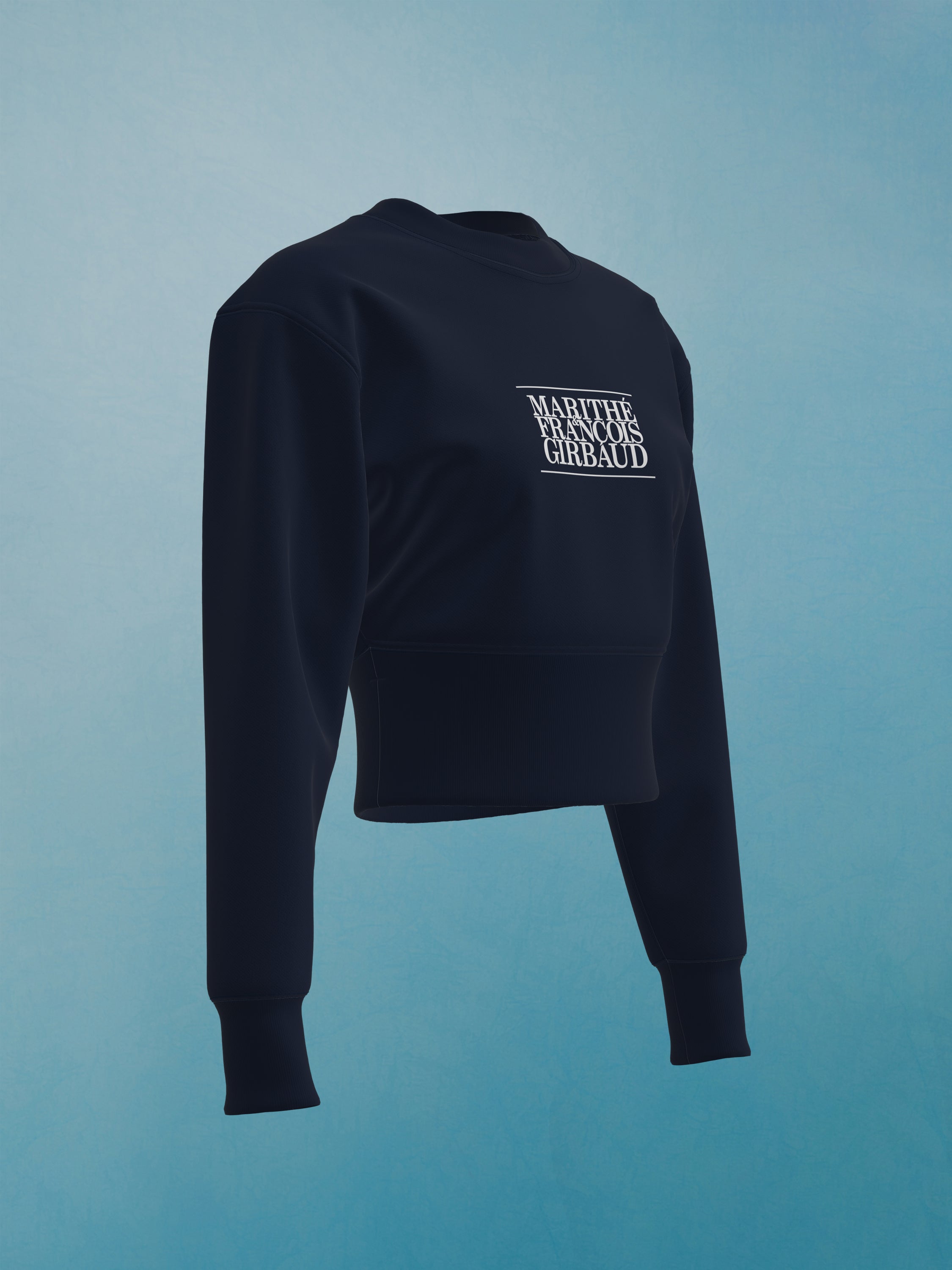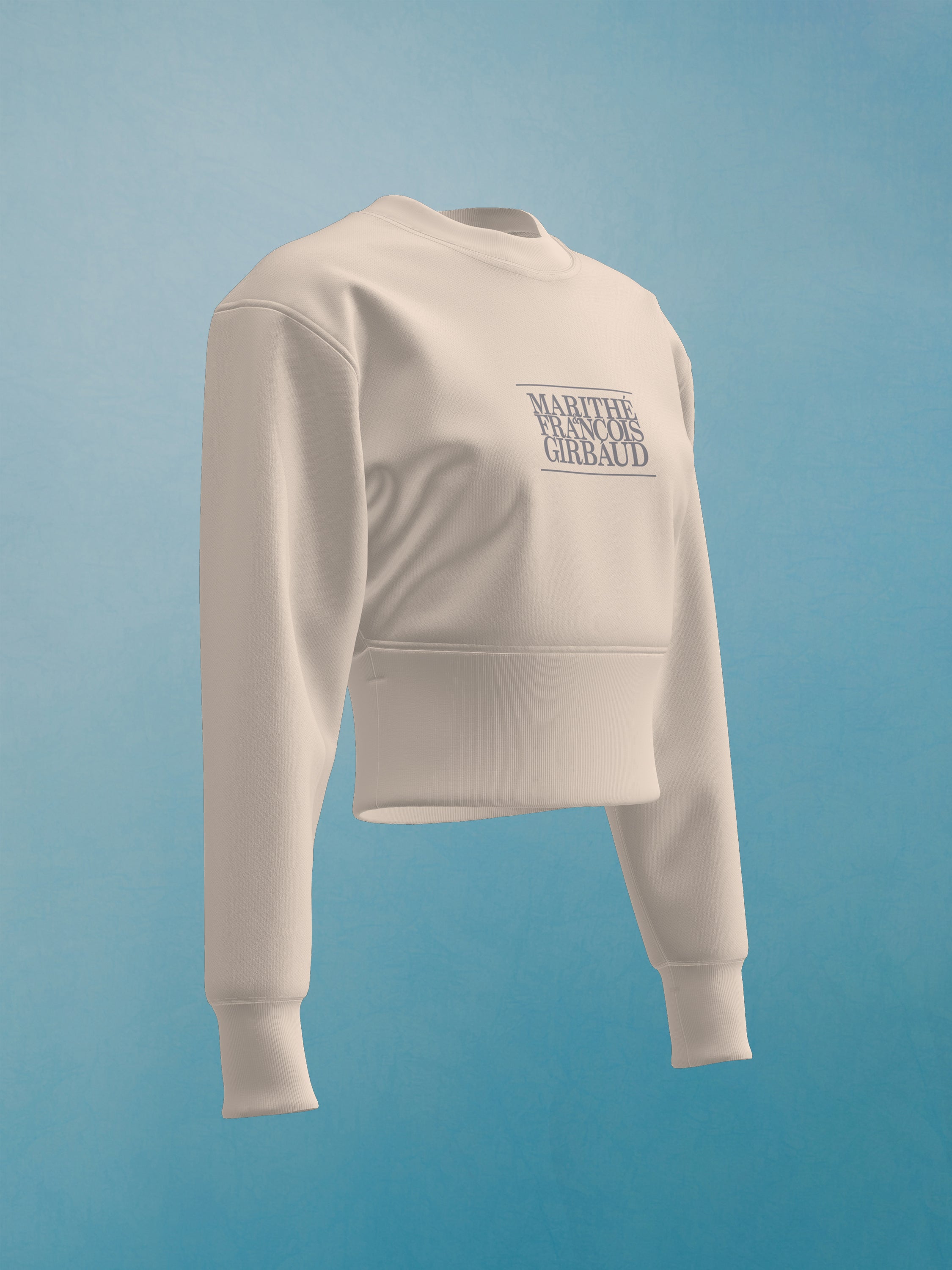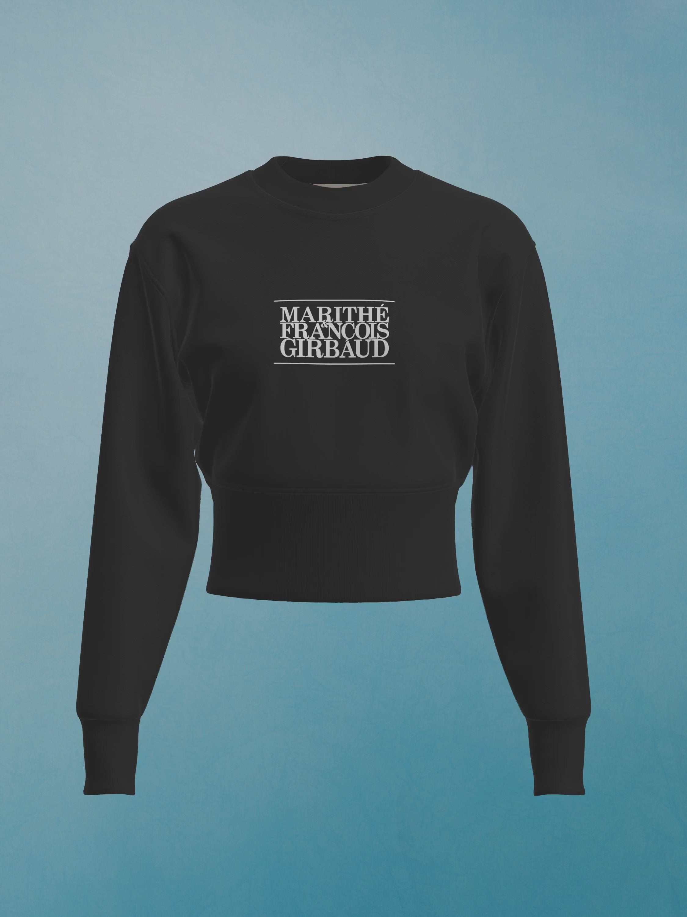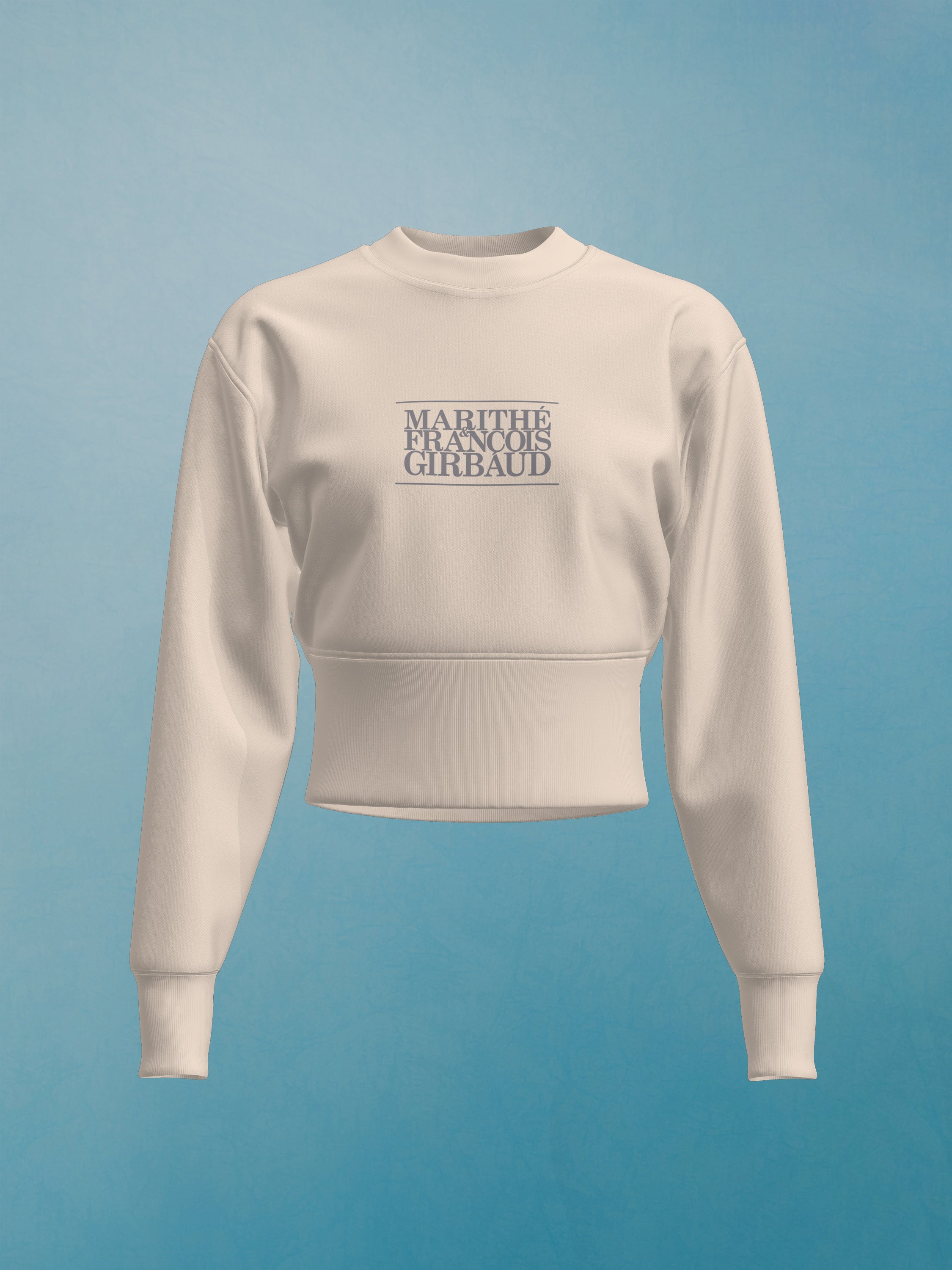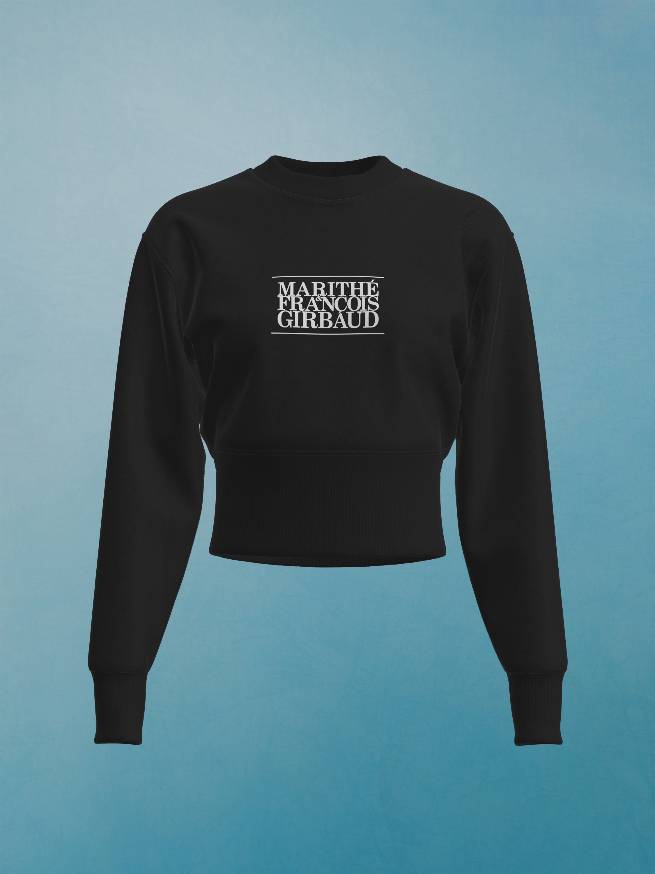 Sweatshirt femme cropped imprimé de notre logo 1972. Réintroduction de la version de notre logo datant de 1972 en réponse à l'engouement qui s'est développé autour de lui en Asie et évoquant le riche héritage de la marque Marithé + François Girbaud.