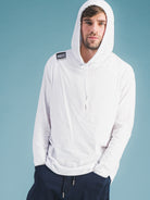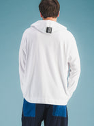 Tee-shirt à capuche manches longues avec le nouveau Tear off Label 2022 en jersey de coton. Passe pouce aux manches. La nouvelle étiquette Tear-off Label sur l'épaule droite, qui peut être visible, cachée, ou même découpée, est devenue le point central de la nouvelle gamme Internwear de la marque : WEAR IT IN, WEAR IT OUT, or TEAR IT OFF. Cette évolution d'un identifiant de marque existant évoque la riche histoire de Marithé François Girbaud.