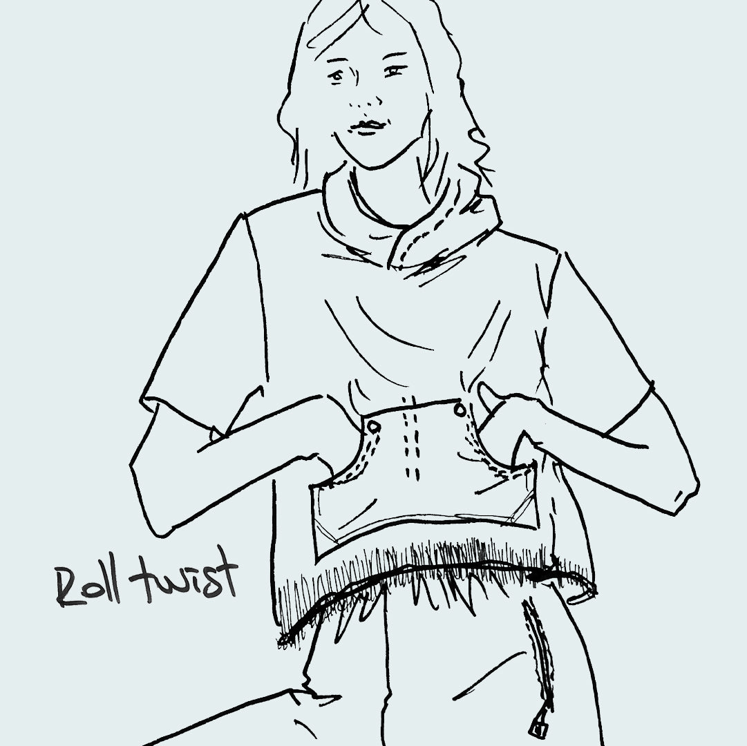 Le Roll Twist tient son nom de sa poche kangourou et ses bords retournées qui reprend les codes de nos jeans.