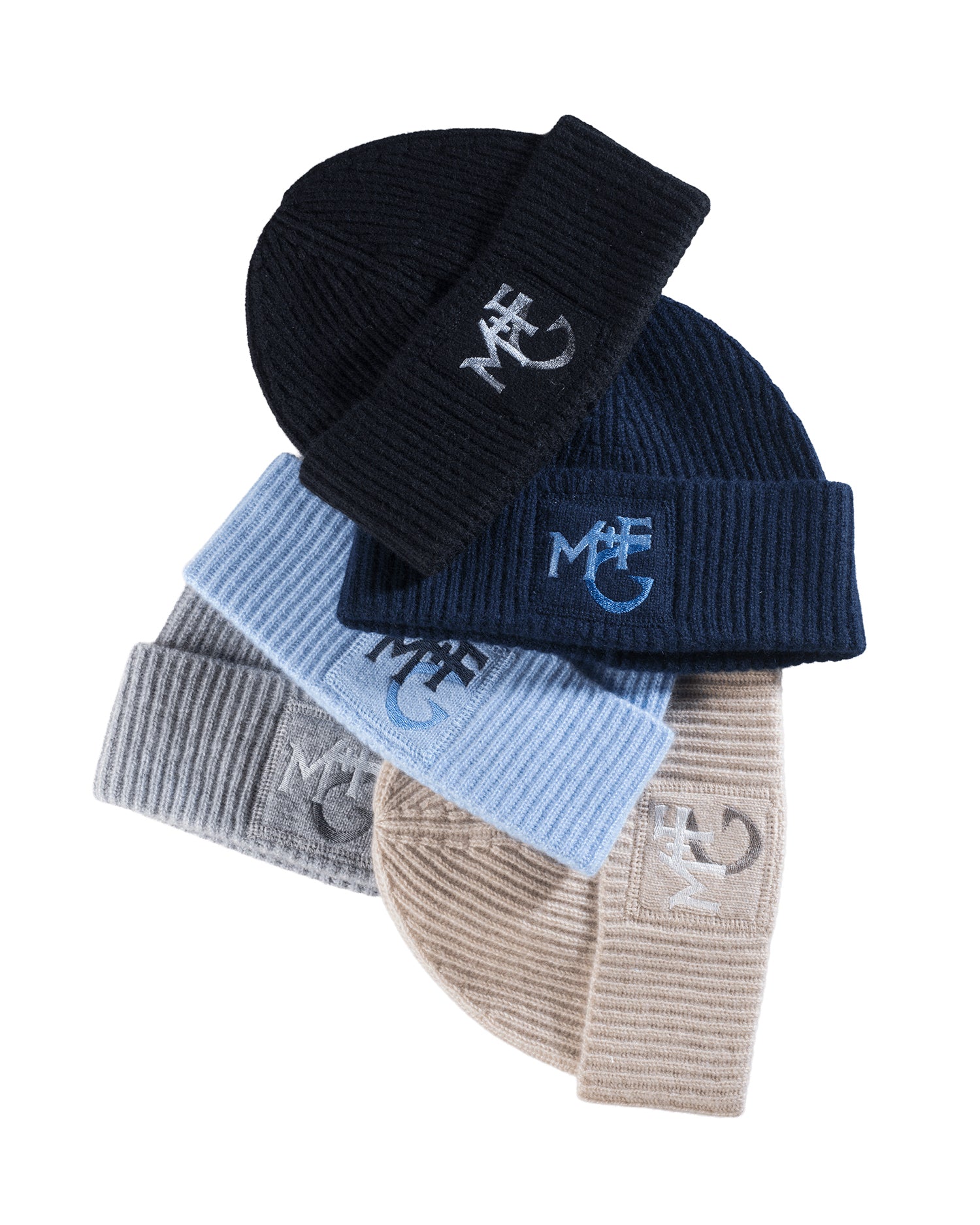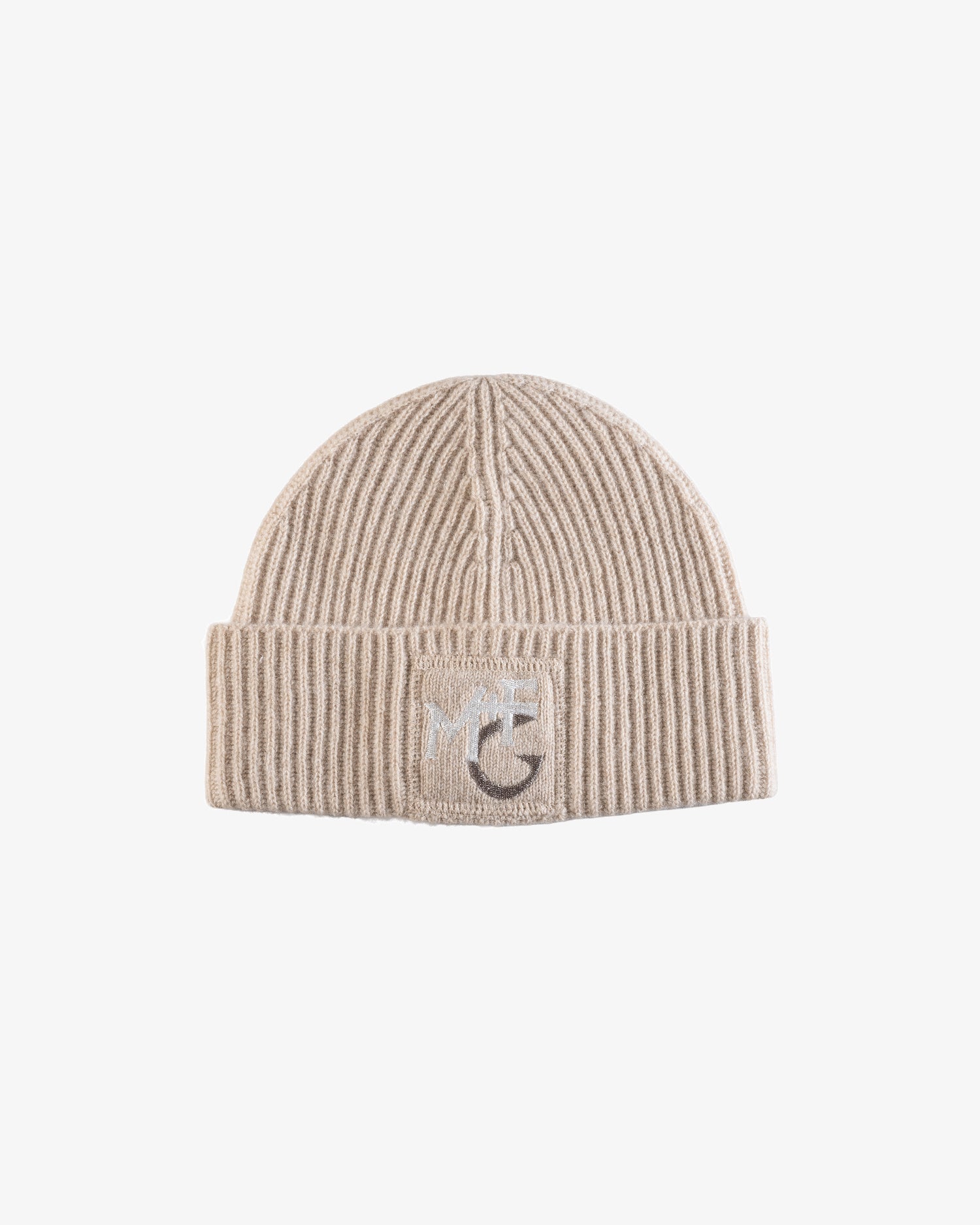 Cashmere beanie, featuring the M+FG monogram embroidered on the front.